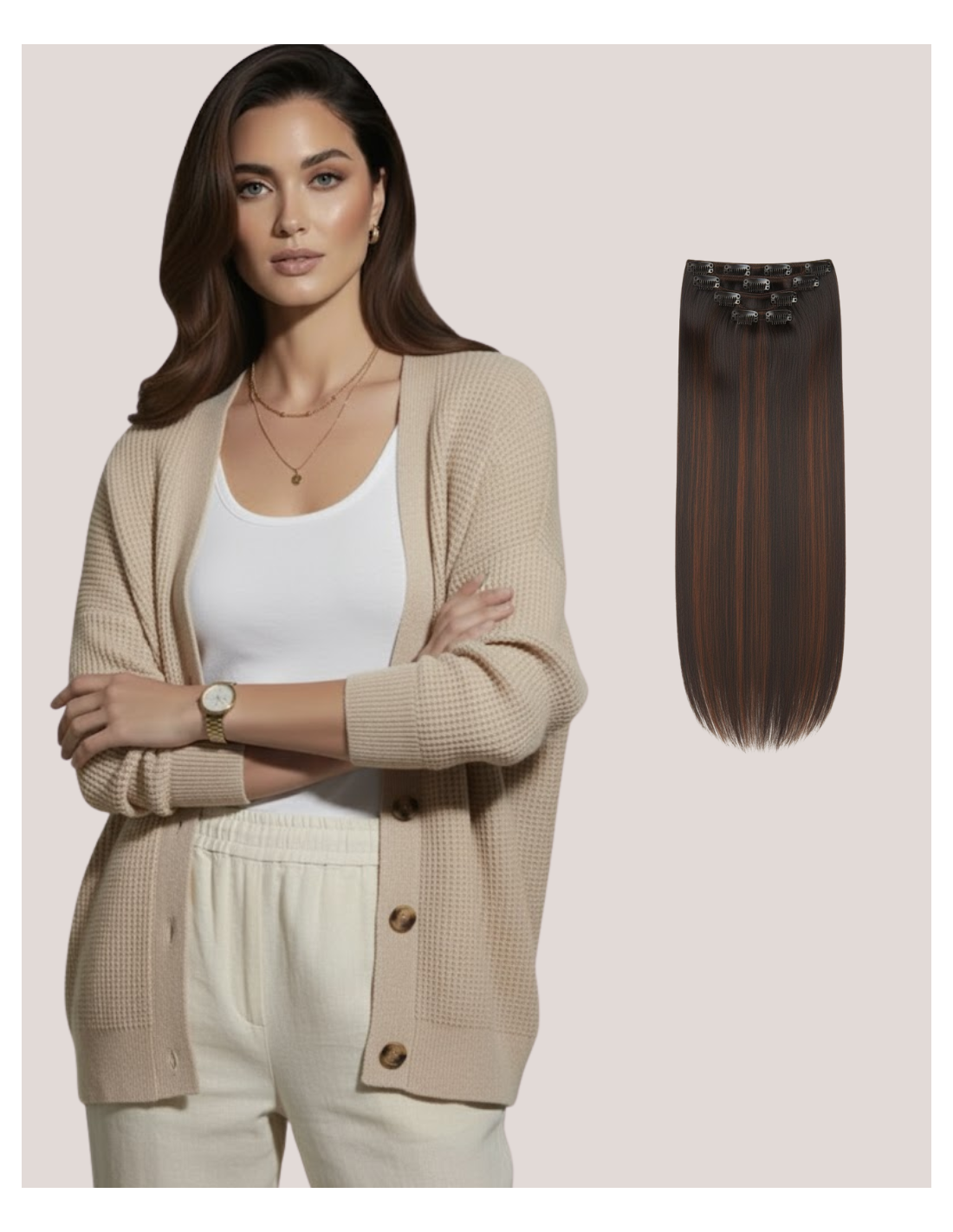 Alege acum sa ai un par lung si voluminos! Extensiile Clip On Best Seller iti sunt la indemana pentru a crea coafuri deosebite si foarte usor de realizat chiar la tine acasa. Coafeaza-le dupa bunul plac si experimenteaza cu diferitele nuante de ombre din paletarul nostru. In doar cateva minute poti obtine un look special.