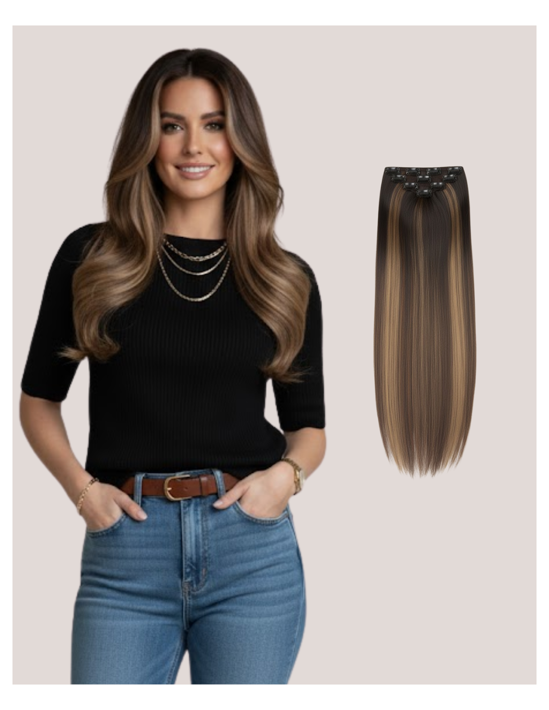 Alege acum sa ai un par lung si voluminos! Extensiile Clip On Best Seller iti sunt la indemana pentru a crea coafuri deosebite si foarte usor de realizat chiar la tine acasa. Coafeaza-le dupa bunul plac si experimenteaza cu diferitele nuante de ombre din paletarul nostru. In doar cateva minute poti obtine un look special.