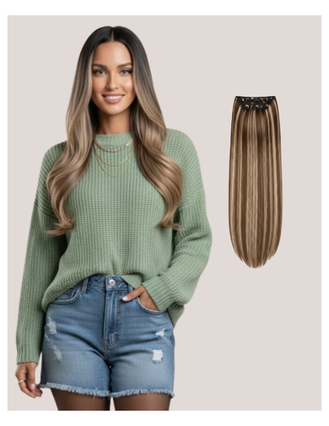 Alege acum sa ai un par lung si voluminos! Extensiile Clip On Best Seller iti sunt la indemana pentru a crea coafuri deosebite si foarte usor de realizat chiar la tine acasa. Coafeaza-le dupa bunul plac si experimenteaza cu diferitele nuante de ombre din paletarul nostru. In doar cateva minute poti obtine un look special.
