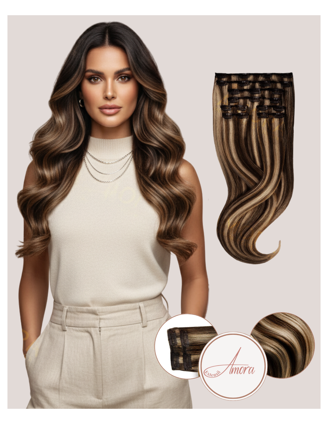 Extensii Clip-On AMORA.RO: Păr Indian - Secretul unui Volum Bogat și Rezistent! Dacă îți dorești un look spectaculos, cu volum intens și o textură rezistentă, setul nostru Clip-On din Păr Indian este alegerea ideală. Aceste extensii sunt recunoscute la nivel mondial pentru densitatea și forța lor, oferind o transformare vizibilă și plină de viață.