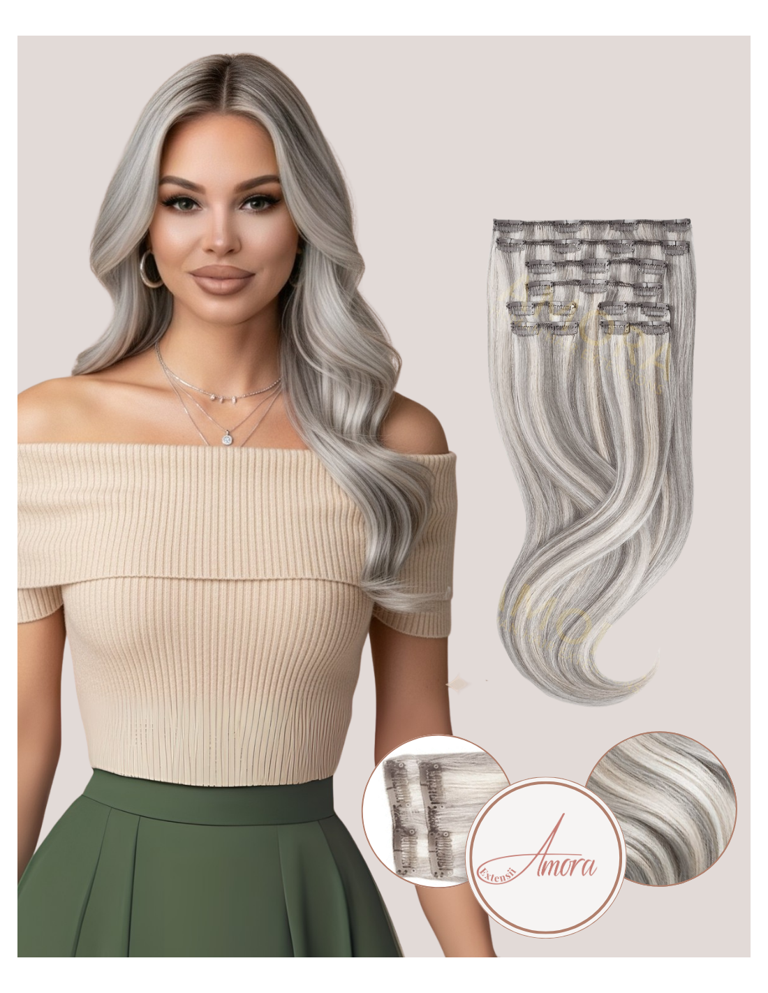 Extensii Clip-On AMORA.RO: Păr Indian - Secretul unui Volum Bogat și Rezistent! Dacă îți dorești un look spectaculos, cu volum intens și o textură rezistentă, setul nostru Clip-On din Păr Indian este alegerea ideală. Aceste extensii sunt recunoscute la nivel mondial pentru densitatea și forța lor, oferind o transformare vizibilă și plină de viață.