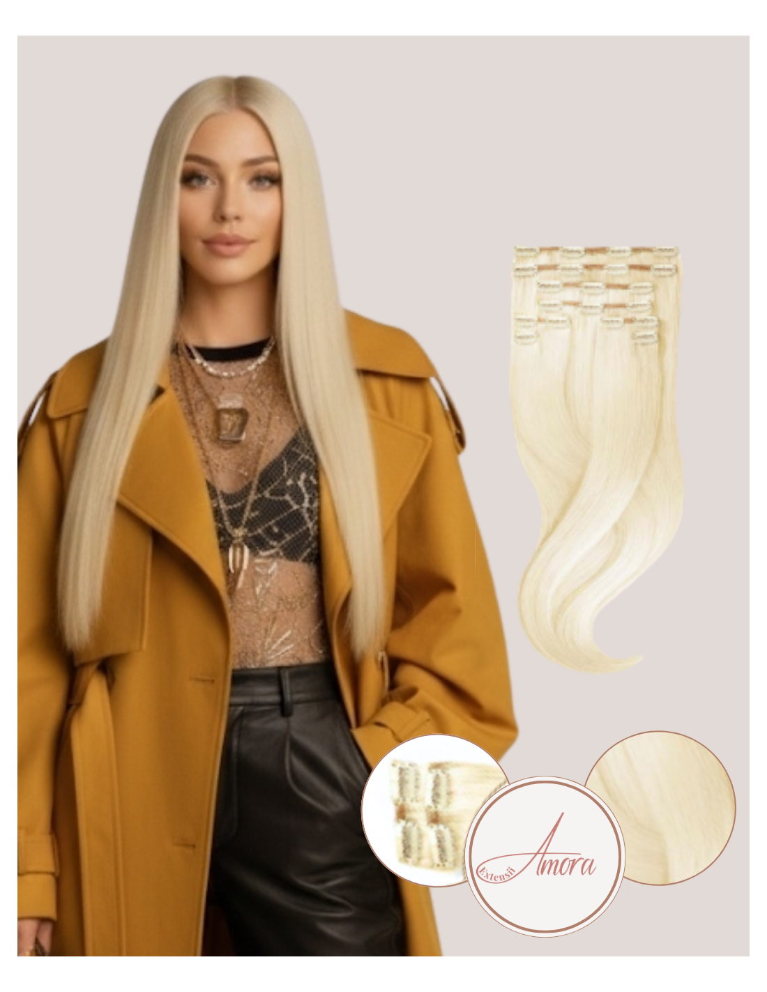 Extensii Clip On Mega Volum Blond Rece Perlat 60