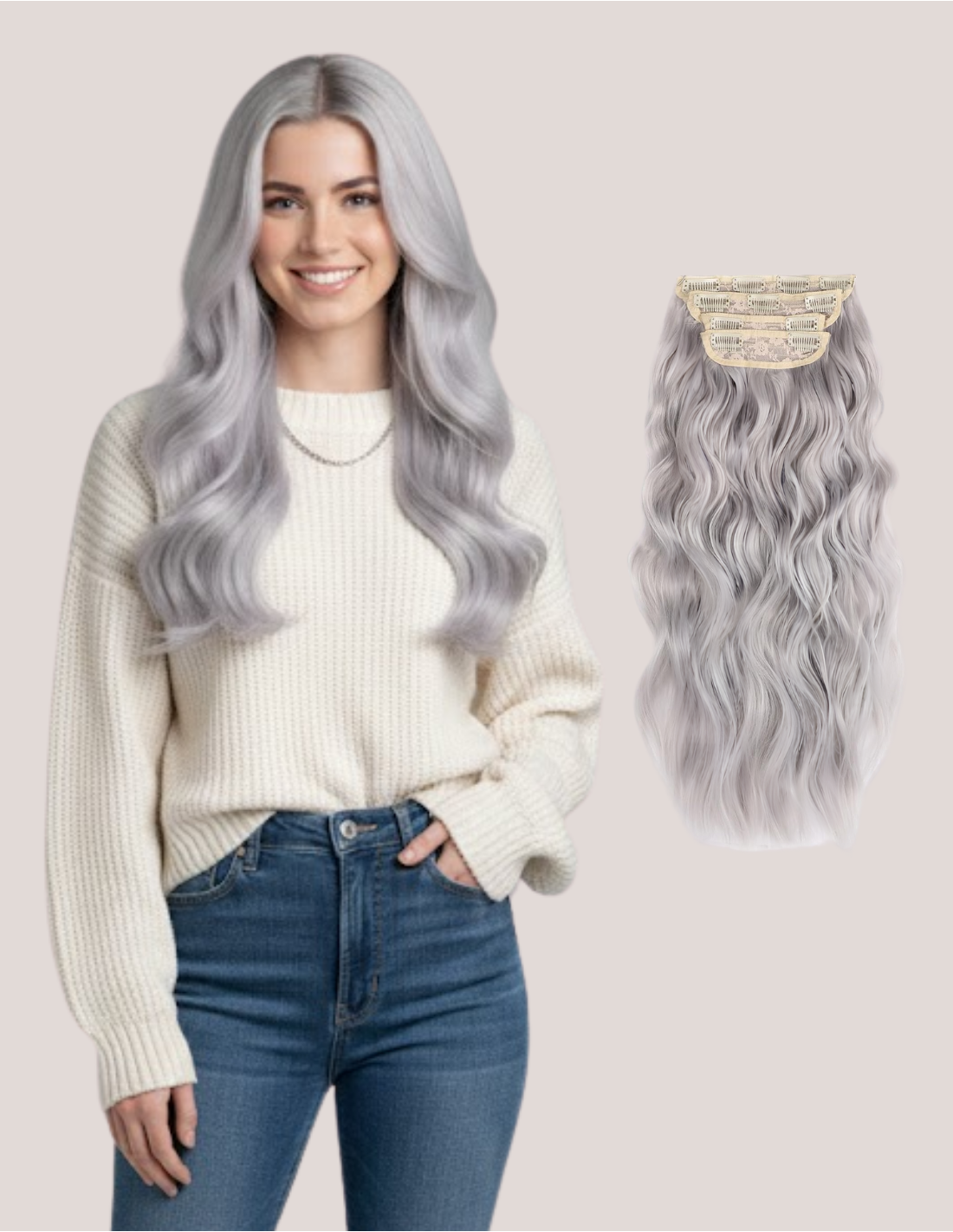 Extensiile clip-on ondulate de 55 cm din fibră termorezistentă sunt o soluție rapidă și accesibilă pentru a adăuga instantaneu lungime (55 cm) și volum coafurii, având o textură ondulată bogată. Se aplică ușor prin prindere cu clipsuri, fiind ideale pentru evenimente sau purtare ocazională.