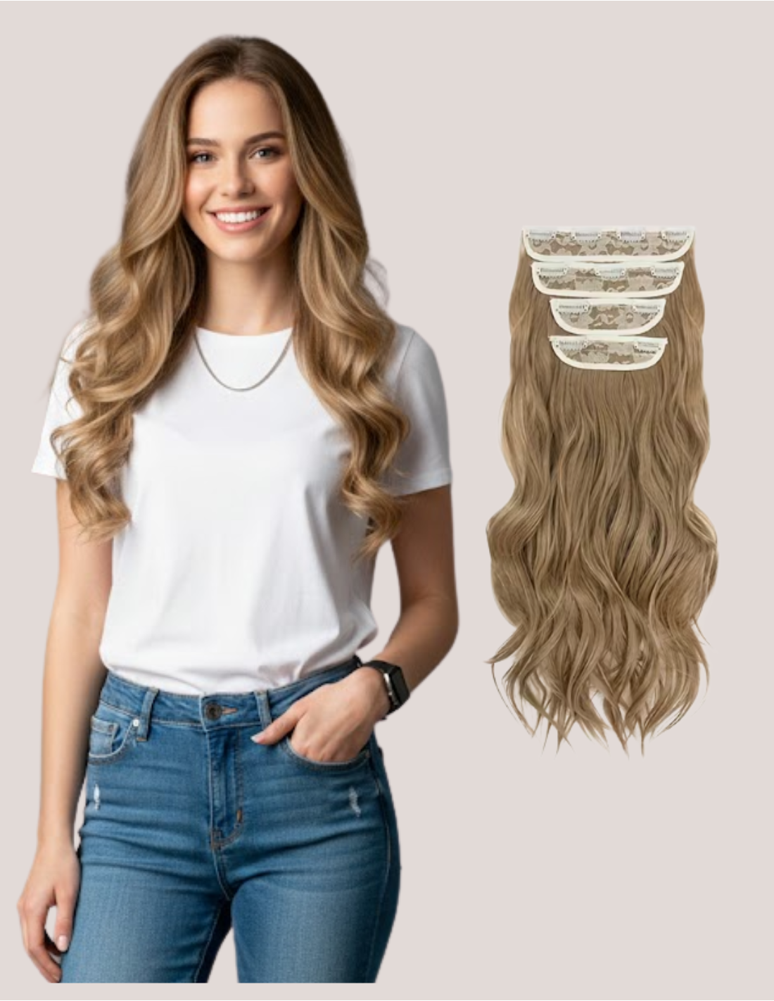 Extensiile clip-on ondulate de 55 cm din fibră termorezistentă sunt o soluție rapidă și accesibilă pentru a adăuga instantaneu lungime (55 cm) și volum coafurii, având o textură ondulată bogată. Se aplică ușor prin prindere cu clipsuri, fiind ideale pentru evenimente sau purtare ocazională.