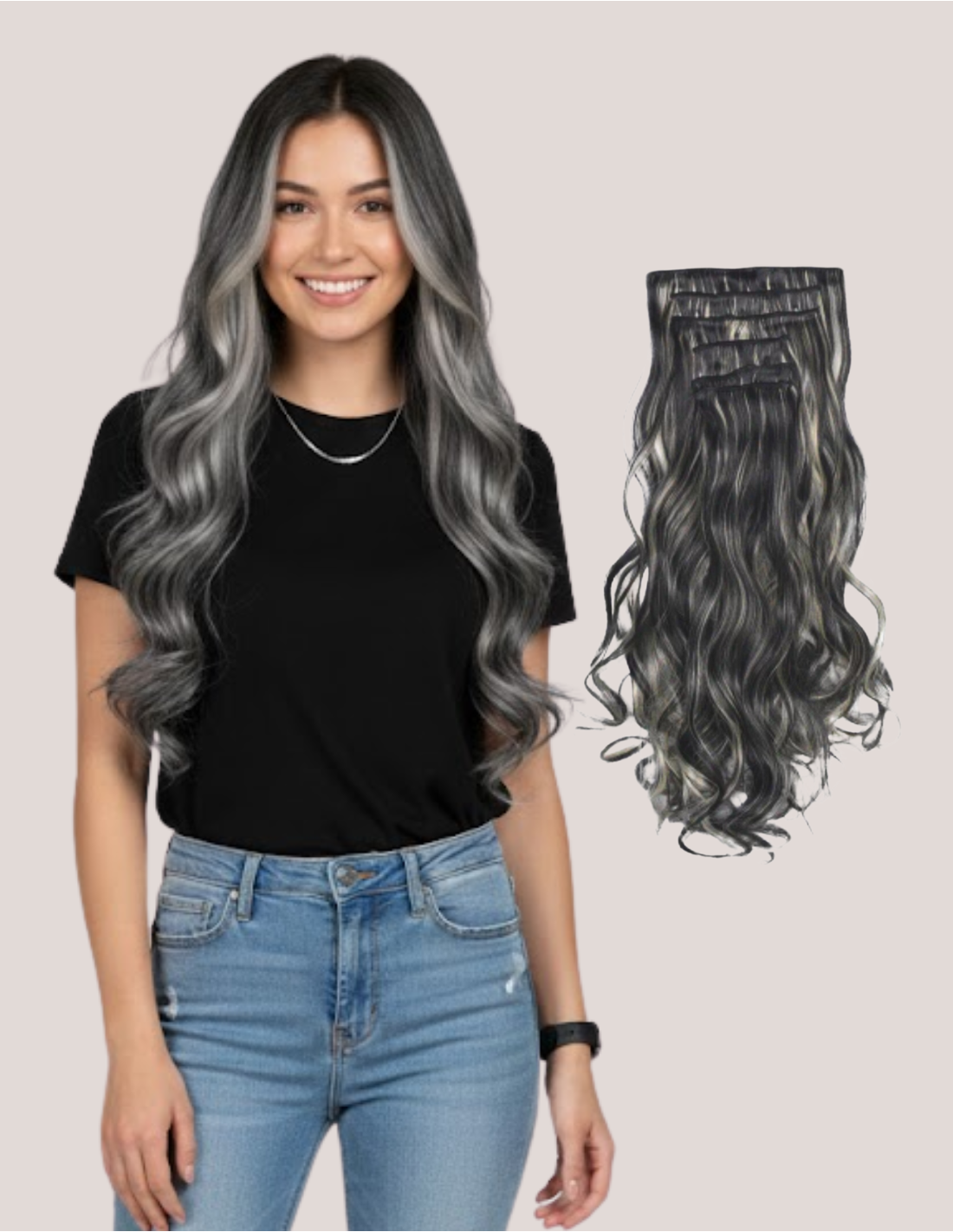 Extensii Clip On Ondulat Suvitat Negru-Gray