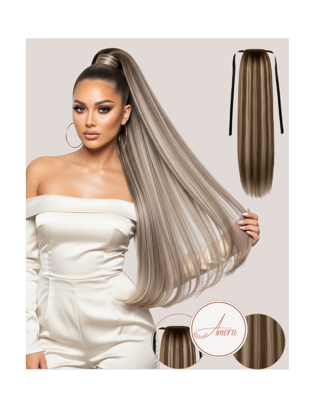 Coadă 100% păr rusesc natural, cu prindere rapidă tip wrap & secure, efect de păr des și lucios în doar 1–2 minute.
