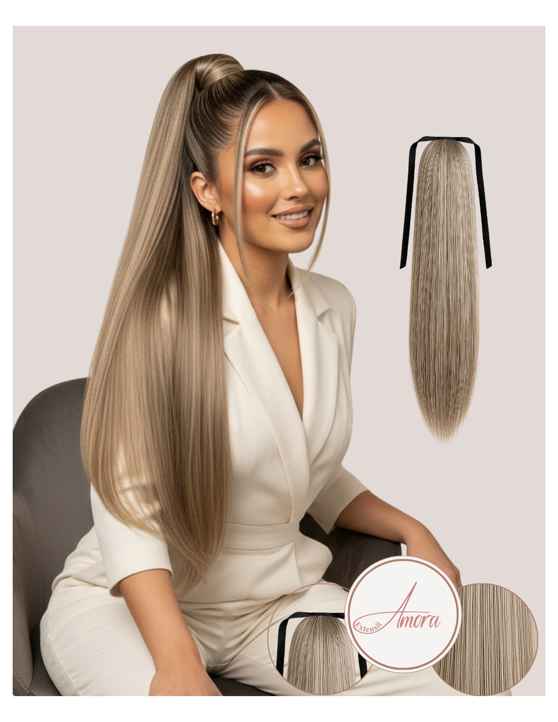 Coadă 100% păr rusesc natural, cu prindere rapidă tip wrap & secure, efect de păr des și lucios în doar 1–2 minute.