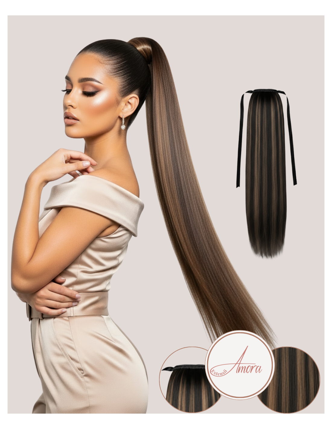 Coadă 100% păr rusesc natural, cu prindere rapidă tip wrap & secure, efect de păr des și lucios în doar 1–2 minute.