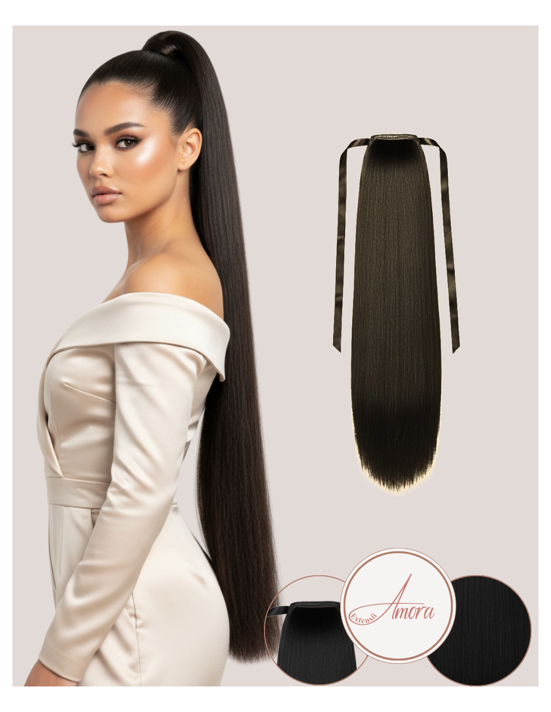 Coadă 100% păr rusesc natural, cu prindere rapidă tip wrap & secure, efect de păr des și lucios în doar 1–2 minute.