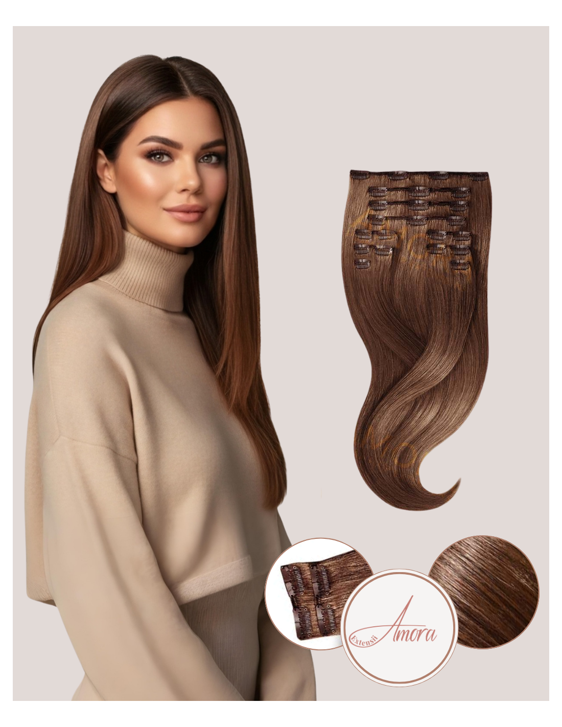 Extensii Clip On Amora Saten Ciocolatiu 4