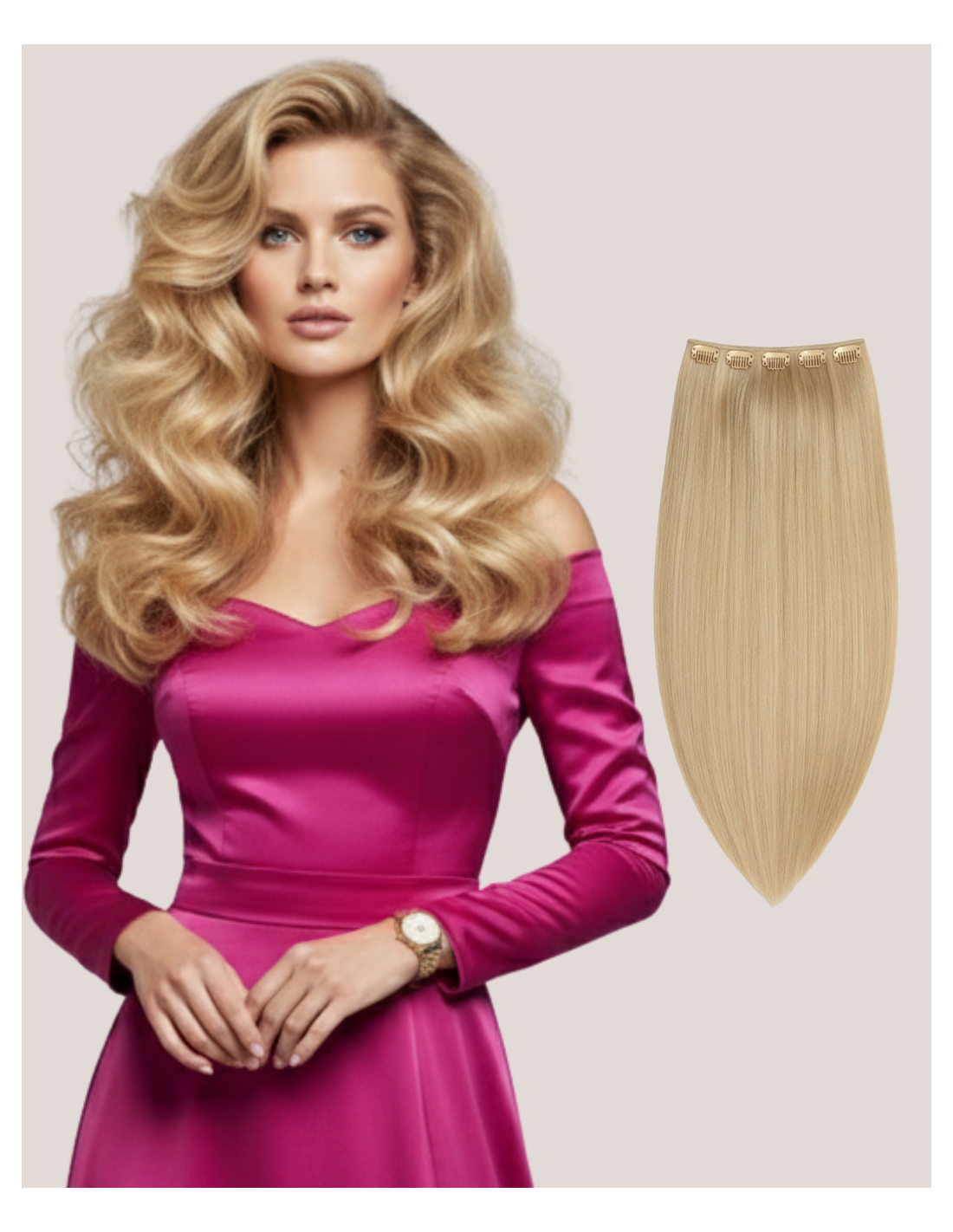 - Sistem de Prindere: Tresa este echipată cu 5 clipsuri cu silicon pentru o fixare ultra-rapidă, maximă stabilitate și protecția firului de păr natural.
