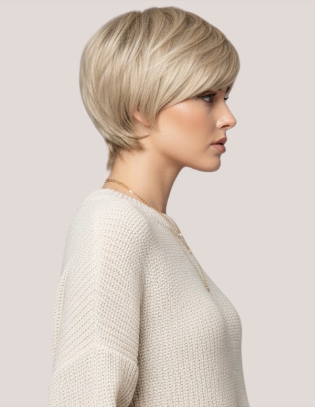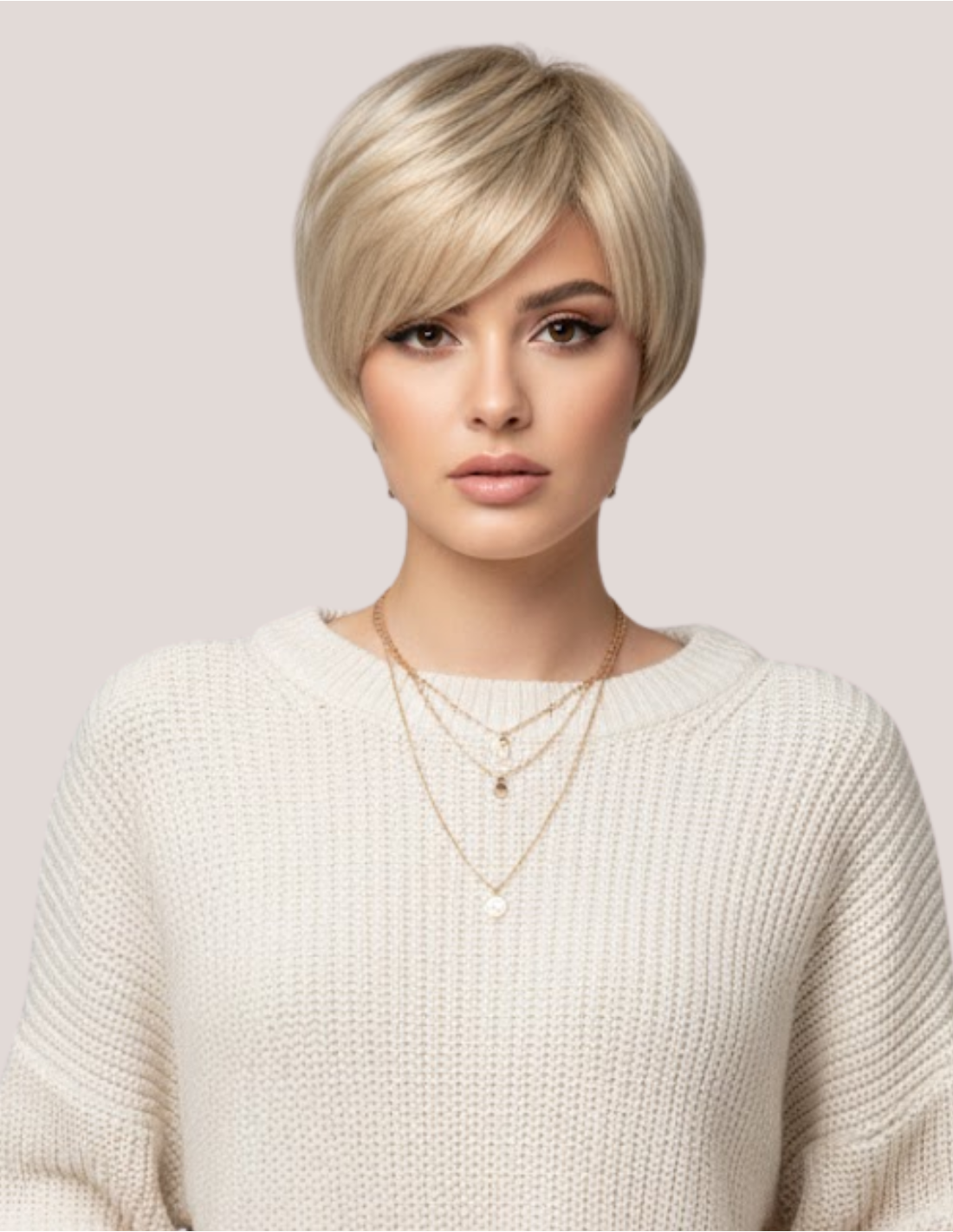Intră în lumea inovației și a glamourului cu perucile noastre excepționale, realizate dintr-o fibră specială termirezistentă care redefinește frumusețea. Cufundați-vă într-un amestec perfect între tehnologie și artă, în care fiecare șuviță din această fibră speciala unică captează esența părului natural și sănătos.