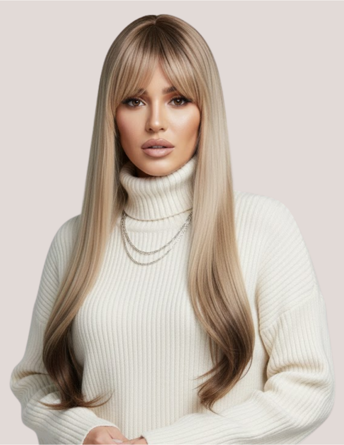 Intră în lumea inovației și a glamourului cu perucile noastre excepționale, realizate dintr-o fibră specială termirezistentă care redefinește frumusețea. Cufundați-vă într-un amestec perfect între tehnologie și artă, în care fiecare șuviță din această fibră speciala unică captează esența părului natural și sănătos.