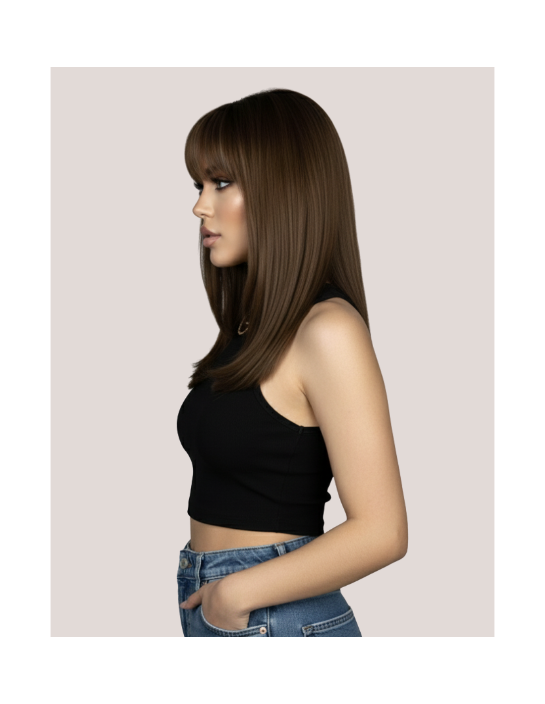 Perucă din păr natural, nuanța #4, cu textură dreaptă, bază clasică și structură aerisită. Este reglabilă, termorezistentă până la 180°C și oferă un aspect natural fără efort. Ideală pentru confort zilnic și un look elegant în orice moment.