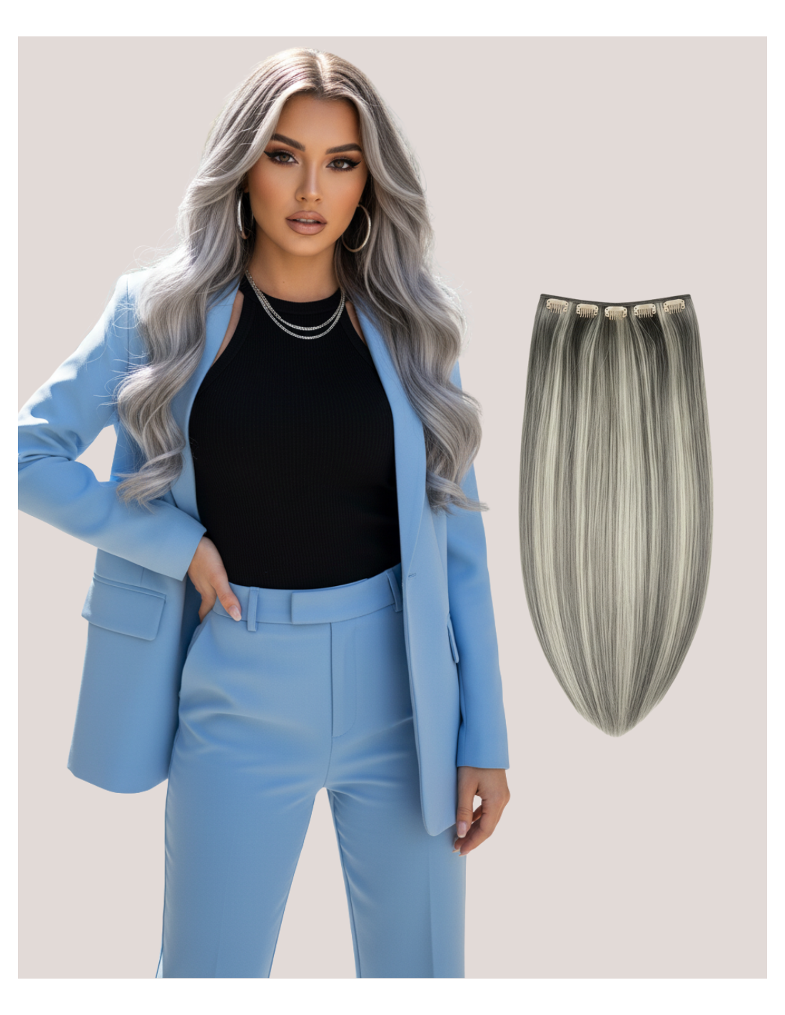 Sistem de Prindere: Tresa este echipată cu 5 clipsuri cu silicon pentru o fixare rapidă, maximă stabilitate și protecția firului de păr natural.