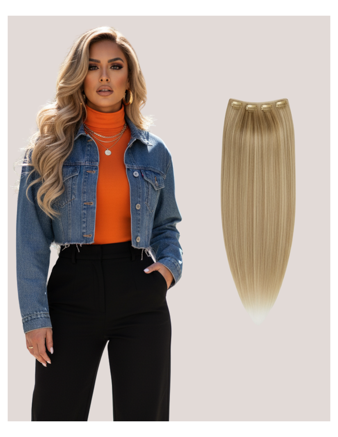 Aplicare Ultra-Rapidă: Datorită formatului său, obții volumul și lungimea dorită prin fixarea unei singure trese late. Cele 5 clipsuri sigure asigură fixarea pe toată circumferința capului.