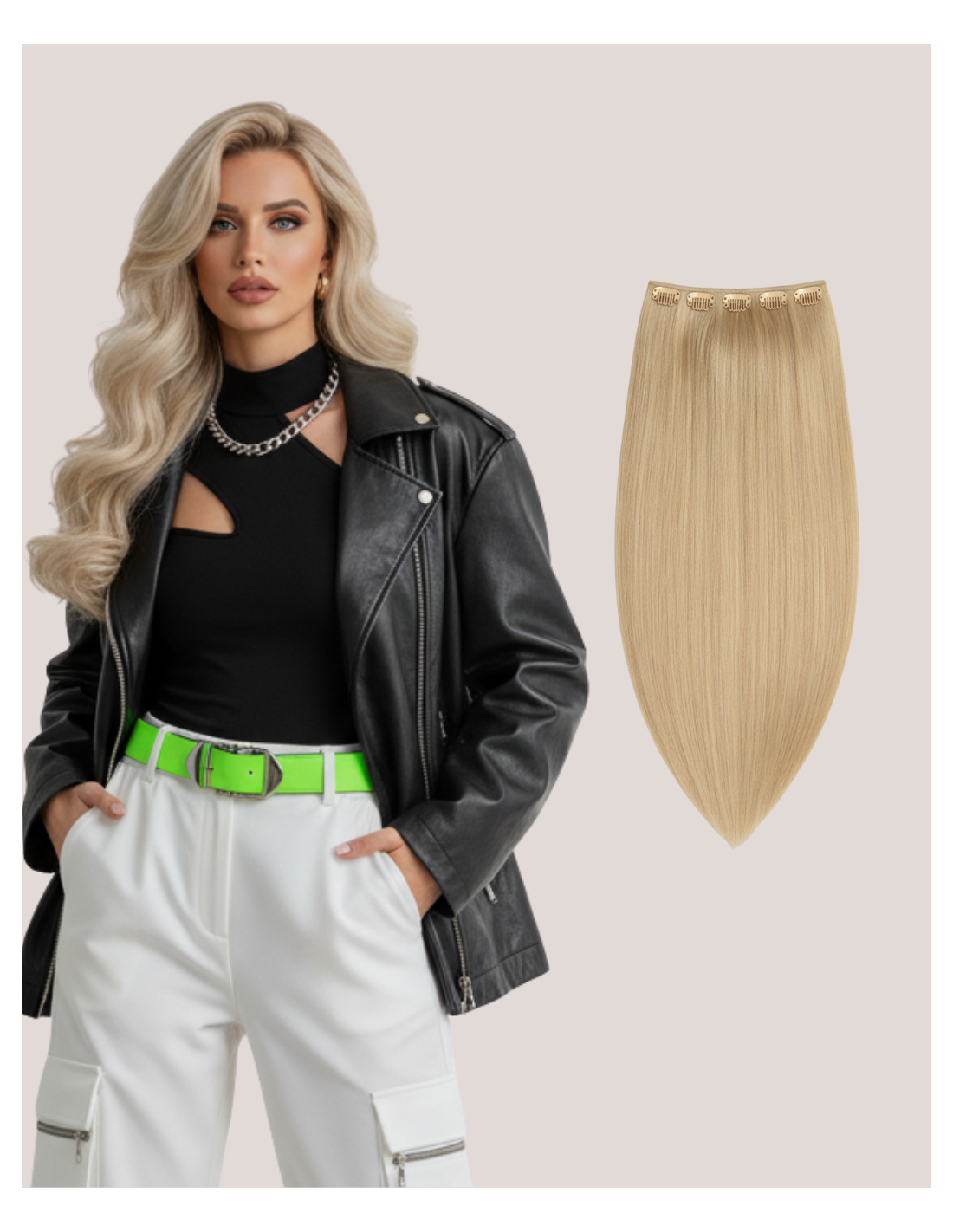 Aplicare Ultra-Rapidă: Datorită formatului său, obții volumul și lungimea dorită prin fixarea unei singure trese late. Cele 5 clipsuri sigure asigură fixarea pe toată circumferința capului.
