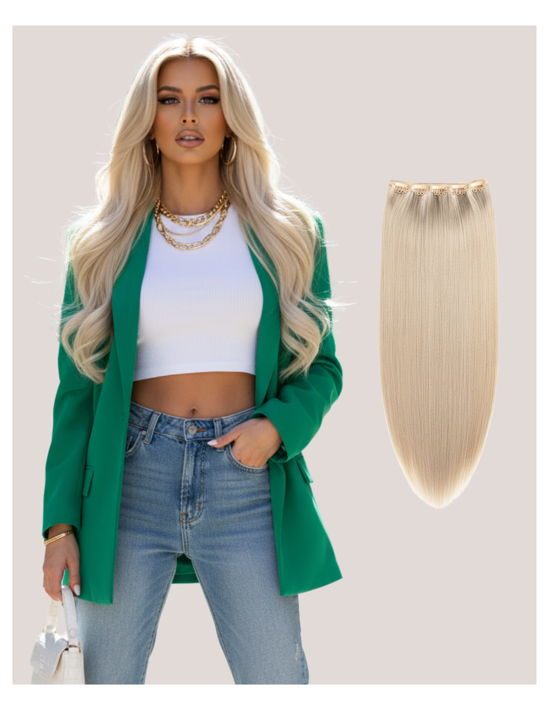 Aplicare Ultra-Rapidă: Datorită formatului său, obții volumul și lungimea dorită prin fixarea unei singure trese late. Cele 5 clipsuri sigure asigură fixarea pe toată circumferința capului.