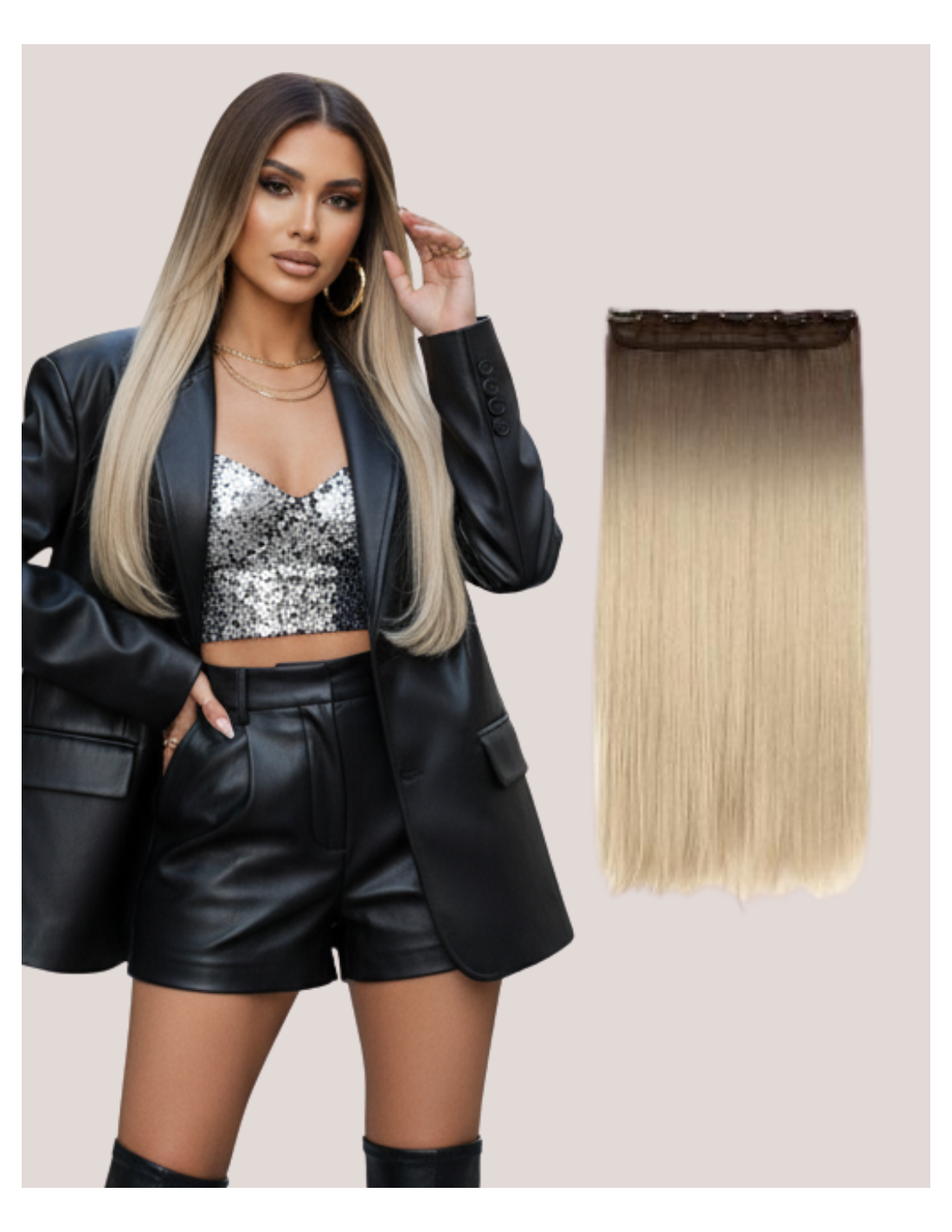 Aplicare Ultra-Rapidă: Datorită formatului său, obții volumul și lungimea dorită prin fixarea unei singure trese late. Cele 5 clipsuri sigure asigură fixarea pe toată circumferința capului.