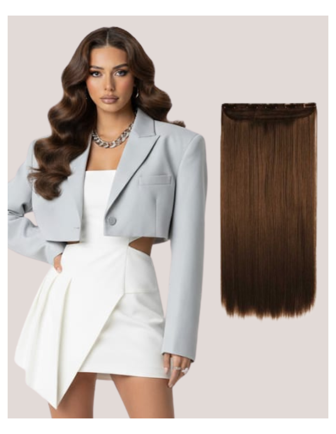 Aplicare Ultra-Rapidă: Datorită formatului său, obții volumul și lungimea dorită prin fixarea unei singure trese late. Cele 5 clipsuri sigure asigură fixarea pe toată circumferința capului.