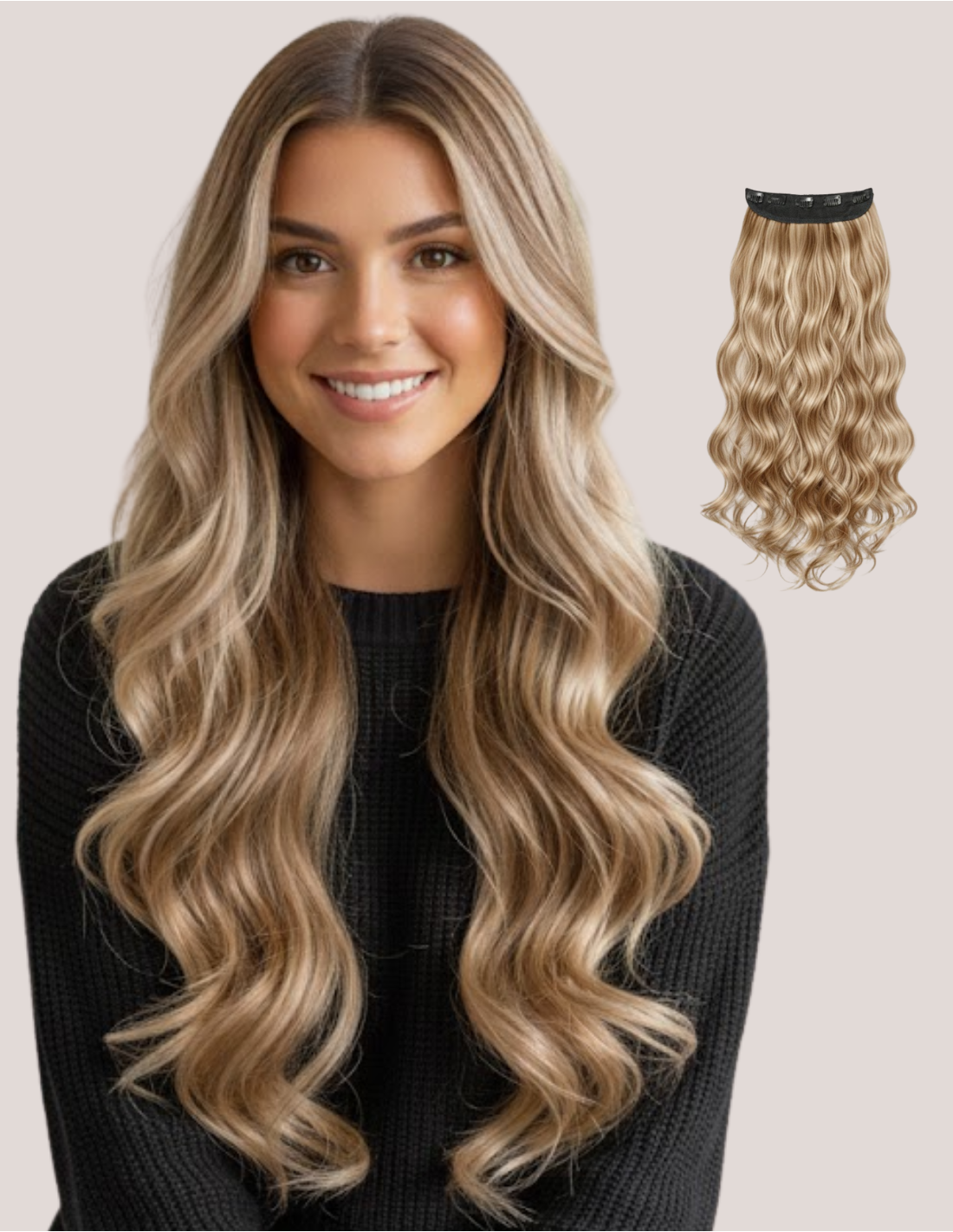 Tresa de 55 cm, ondulată, din fibră sintetică adaugă instantaneu lungime și volum coafurii. Este o meșă lată, gata coafată, ușor de aplicat prin clipsare, ideală pentru un look bogat și ondulat la un preț accesibil.