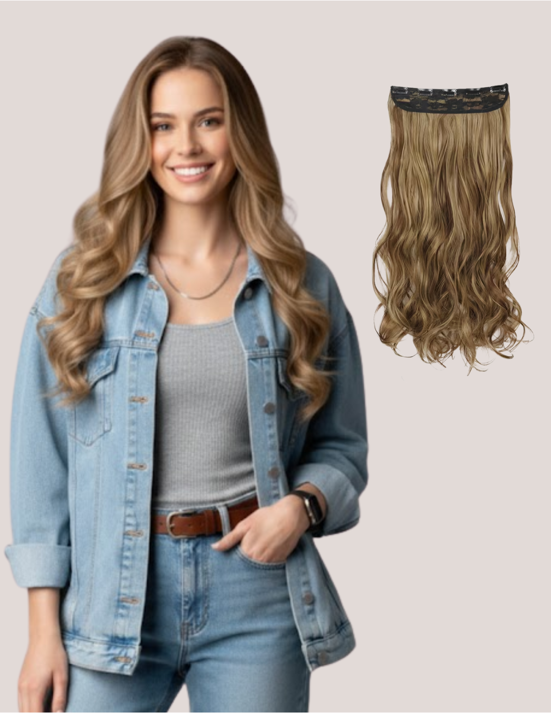Tresa de 55 cm, ondulată, din fibră sintetică adaugă instantaneu lungime și volum coafurii. Este o meșă lată, gata coafată, ușor de aplicat prin clipsare, ideală pentru un look bogat și ondulat la un preț accesibil.