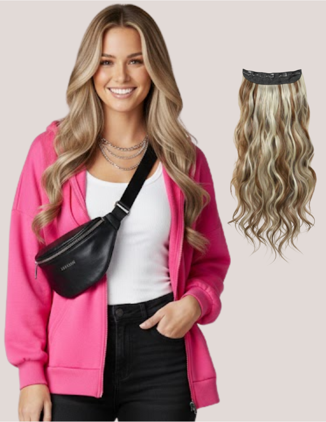 Tresa de 55 cm, ondulată, din fibră sintetică adaugă instantaneu lungime și volum coafurii. Este o meșă lată, gata coafată, ușor de aplicat prin clipsare, ideală pentru un look bogat și ondulat la un preț accesibil.