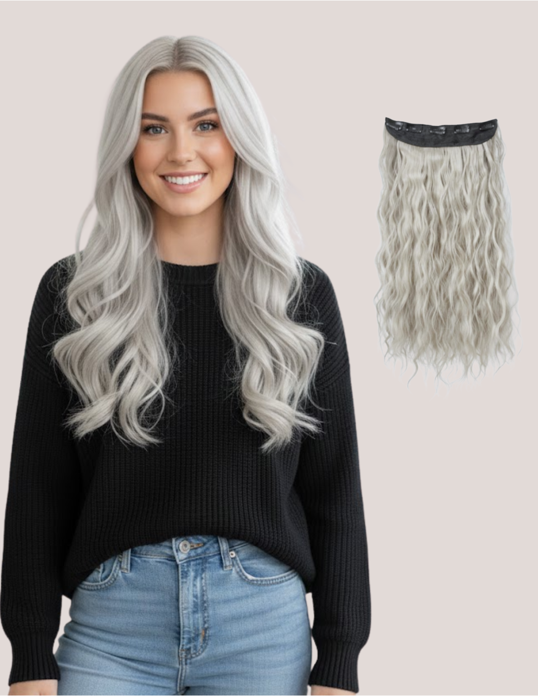 Tresa de 55 cm, ondulată, din fibră sintetică adaugă instantaneu lungime și volum coafurii. Este o meșă lată, gata coafată, ușor de aplicat prin clipsare, ideală pentru un look bogat și ondulat la un preț accesibil.